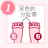 腳尖處穿入,將分趾環套入腳趾縫間底部,調整好分趾環。 |